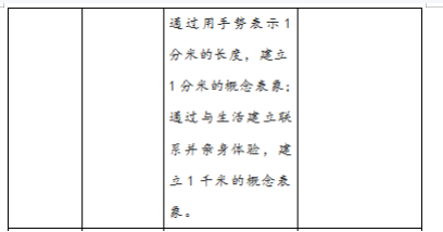 本单元“对量的辨别”体现在通过找生活中哪些物品的长度是1毫米、1分米、1千米的活动,初步建立长度表象,“对量的推断”体现在为给定物品选择合适的长度单位。由于本单元将完成长度单位的建构,因此在“对量的推断”方面可选择性增加,难度加大,更需要学生在头脑中建立更加丰富且准确的长度表象。